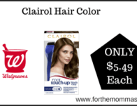 Coupon and Rewards Deal at Walgreens on Clairol Hair Color {$5.49 Each Starting 4/19} Starting 4/19, Walgreens has a great deal on Clairol Hair Color. It is on sale for $10.49 each. And with this Coupon and Rewards Deal at Walgreens on Clairol Hair Color you can score it for just $5.49 each. You need to use the $6.00/2 boxes of CLAIROL® Hair Color Product coupon and $4 … [Read more...] about Coupon and Rewards Deal at Walgreens on Clairol Hair Color Starting 4/19