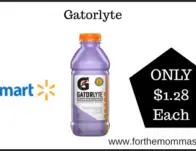 Coupon Deal at Walmart on Gatorlyte {$1.28 Each} We have a great deal on Gatorlyte at Walmart. Normally priced at $2.28 each. With this Coupon Deal at Walmart on Gatorlyte you can score it for just $1.28 each. You need to use the $1.00/1 GATORLYTE® Product coupon to get it for $1.28 each. Walmart Deal: Buy (1) Gatorade Gatorlyte Sports Drink, 20 fl oz … [Read more...] about Coupon Deal at Walmart on Gatorlyte