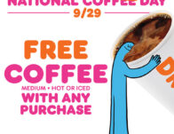 Dunkin: FREE Coffee Today ONLY! Celebrate National Coffee Day today with a FREE medium hot or iced coffee at Dunkin’ with ANY purchase. Limit 1/order/day. Excl. Nitro/Cold Brew and gift cards. Not avail w/ delivery or guest checkout. Cannot be used w/ other offers. Additional charges may apply. Get More Freebies HERE Join 45,000+ subscribers! Subscribe to our … [Read more...] about Dunkin: FREE Coffee Today ONLY!