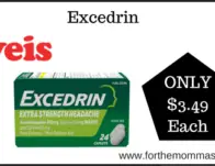 Coupon Deal at Weis on Excedrin {$3.49 Each} Weis has a great deal on Excedrin. It is on sale for $4.99 each. And with this Coupon Deal at Weis on Excedrin you can score it for just $3.49 each. You need to use the $1.50/1 Excedrin 24ct or larger coupon to get it for $3.49 each. Head pain relief medicine delivers a powerful triple action formula with two pain … [Read more...] about Coupon Deal at Weis on Excedrin