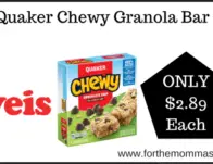 Deal at Weis on Quaker Chewy Granola Bar {$2.89 Each Thru 4/22} We have a great deal on Quaker Chewy Granola Bar at Weis. It is priced at $3.39 each. And with this Ecoupon Deal at Weis on Quaker Chewy Granola Bar you can score it for just $2.89 each. Use the $0.50 Weis Ecoupon to get it for $2.89 each. Weis Deal Thru 4/22 Buy (2) Quaker Chewy Chocolate … [Read more...] about Ecoupon Deal at Weis on Quaker Chewy Granola Bar Thru 4/22