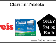 Coupon Deal at Weis on Claritin Tablets {$14.99 Each } Weis shoppers can score a great deal on Claritin Tablets. It is on sale for $19.99 each. And with this Coupon Deal at Weis on Claritin Tablets you can score it for just $14.99 each. You need to use the $5.00/1 Non-Drowsy Claritin® 20ct or larger coupon to get it for $14.99 Each. Weis Deal Buy (1) Claritin … [Read more...] about Coupon Deal at Weis on Claritin Tablets
