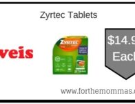 Coupon Deal at Weis on Zyrtec Tablets {$14.99 Each} We have a great deal on Zyrtec Tablets at Weis. It is on sale for $19.99 each. And with this Coupon Deal at Weis on Zyrtec Tablets you can score it for just $14.99 each. You need to use the $5.00/1 Adult ZYRTEC® allergy 24-60ct. product coupon insert to get it for $14.99 each. Weis … [Read more...] about Coupon Deal at Weis on Zyrtec Tablets