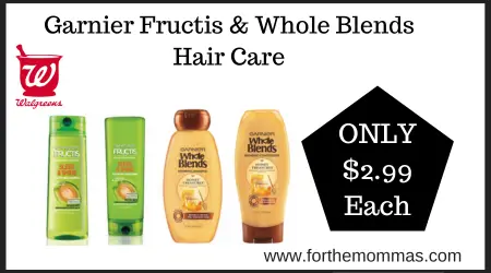 Starting 4/19, we have a great deal on Garnier Fructis & Whole Blends Hair Care at Walgreens. It is on sale for $3.99 each. And with this Rewards Deal at Walgreens on Garnier Fructis & Whole Blends Hair Care you can score it for $2.99 each.