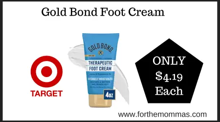 We have a great deal on Gold Bond Foot Cream at Target. Normally priced at $6.69 each. With this Target Deal on Gold Bond Foot Cream, you can score it for just $4.19 each.
