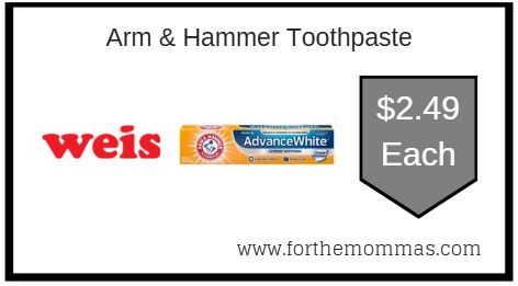 We have a great deal on Arm & Hammer Toothpaste at Weis. It is priced at $3.99 each. And with this Coupon Deal at Weis on Arm & Hammer Toothpaste you can score it for just $2.49 each.