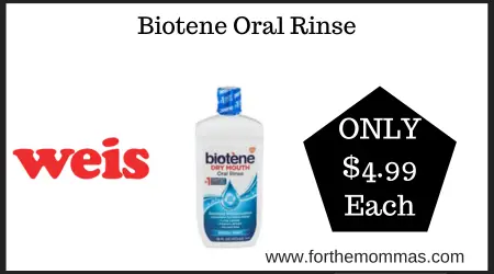 We have a great deal on Biotene Oral Rinse at Weis. It is on sale for $6.99 each. And with this Coupon Deal at Weis on Biotene Oral Rinse you can score it for just $4.99 each.