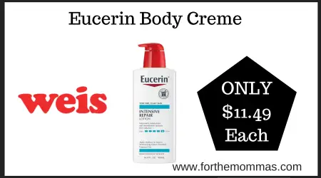 We have a great deal on Eucerin Body Creme at Weis. It is on sale for $13.49 each. And with this Coupon Deal at Weis on Eucerin Body Creme you can score it for just $11.49 each.