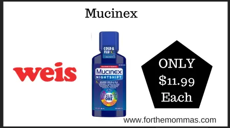 Weis has a great deal on Mucinex It is on sale for $13.99 each. And with this Coupon Deal at Weis on Mucinex, you can score it for just $11.99 each.
