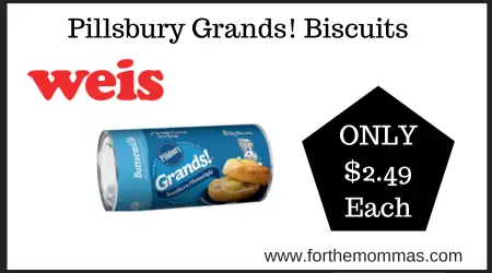 Thru 4/8, Weis shoppers can score a great deal on Pillsbury Grands! Biscuits. It is on sale for $2.99 each. And with Coupon Deal at Weis on Pillsbury Grands! Biscuits you can get it for $2.49 each.