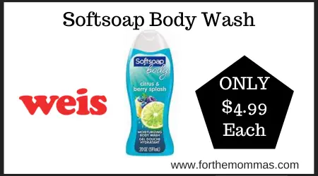 We have a great deal on Softsoap Body Wash at Weis. It is on sale for $5.99 each. And with this Coupon Deal at Weis on Softsoap Body Wash you can score it for just $4.99 each.